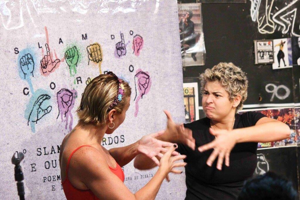 Experiência do grupo artístico Corposinalizante, aberto a jovens surdos e ouvintes que se interessam pela Língua Brasileira de Sinais.